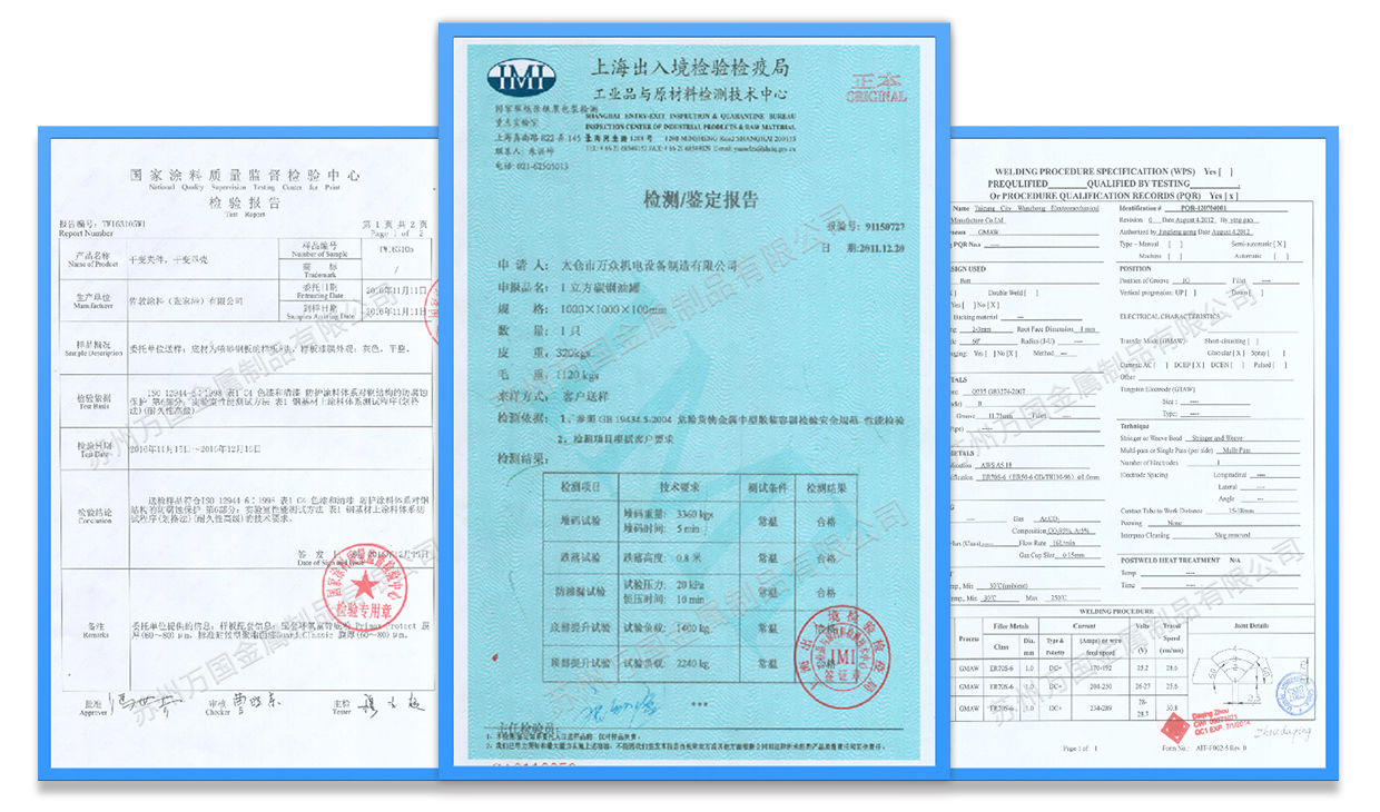 我們嚴(yán)格地運行生產(chǎn)過程的質(zhì)量管控和成品檢驗,并擁有WPS焊接工藝評定、C4-H防腐認證、罐體鑒定檢測報告等,確保給客戶提供高品質(zhì)、高性能的產(chǎn)品
